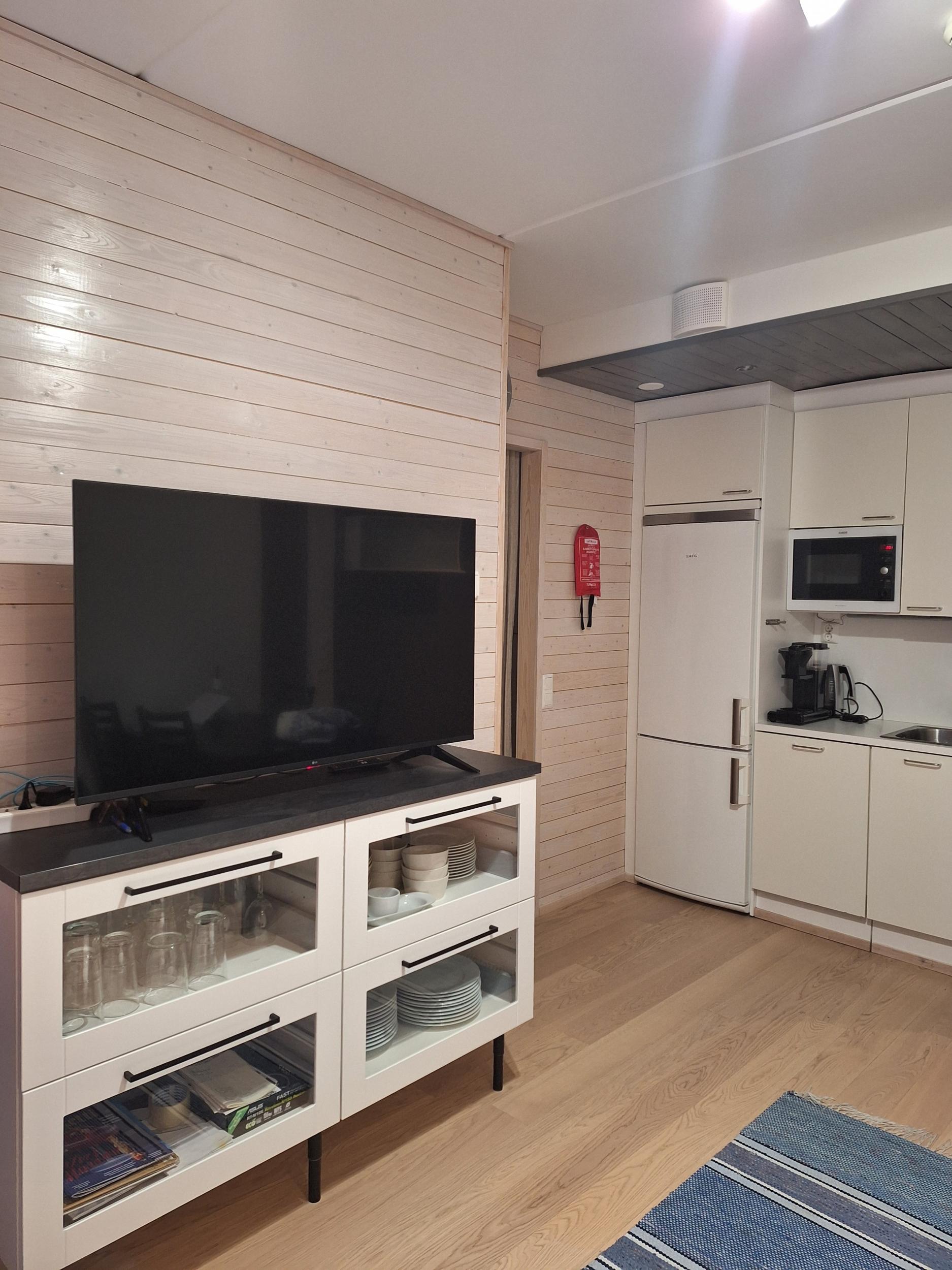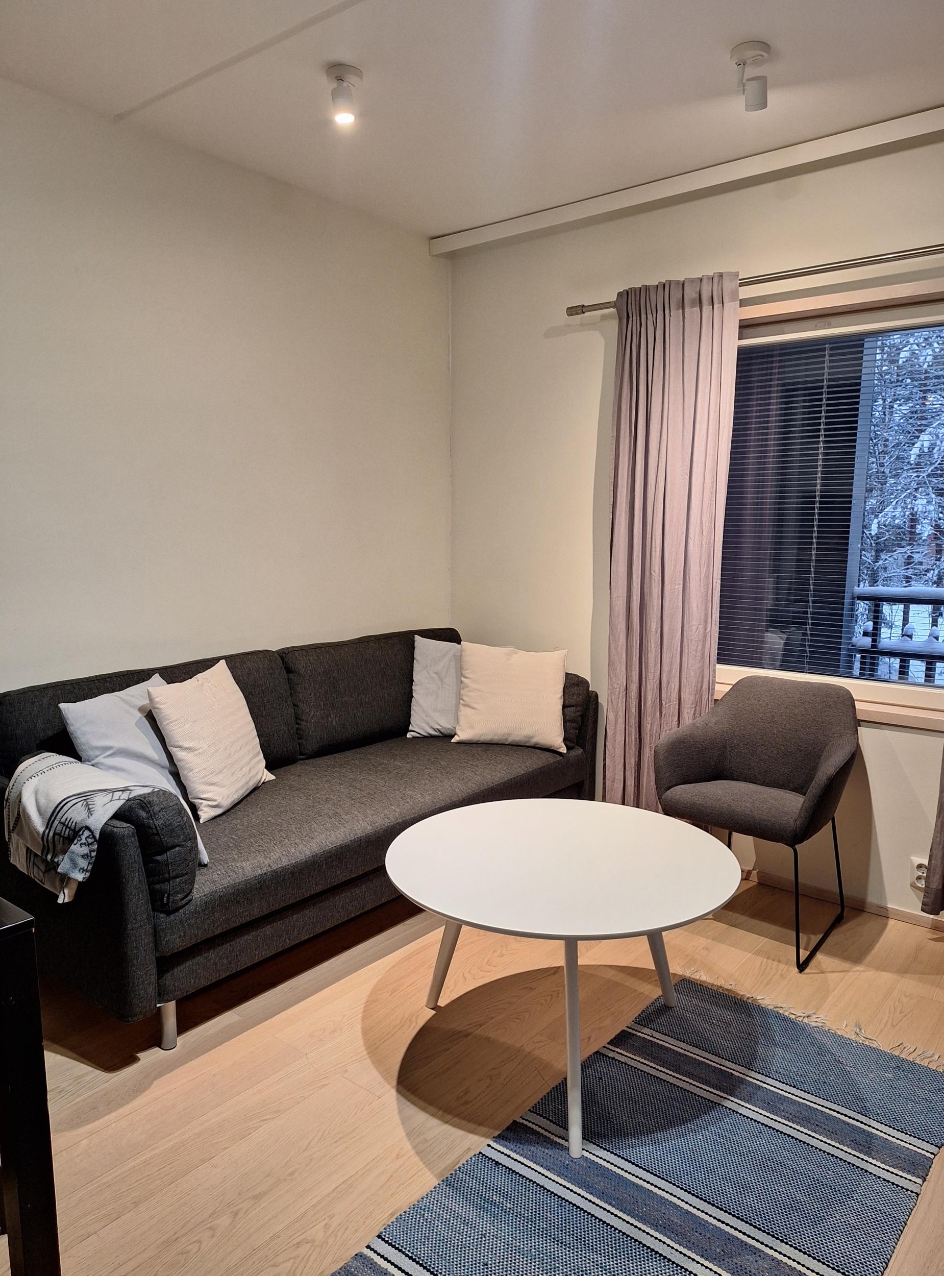 The alpine apartment locates in the city center of Levi, one of Finlands most famous holiday resort in Lappland. The services, trip bookings, ski trails and the main slope of Levi are only a 5 minutes’ walk from the flat. The 46 m2 alpine chalet is located on the second floor of the building. It has a twin bedroom, sleeping alcove, living room - kitchen, a balcony, a spacious washroom/toilet, and sauna. The floor plan is very practical and handy with fully equipped nice interior. The flat has also a free WiFi connection.